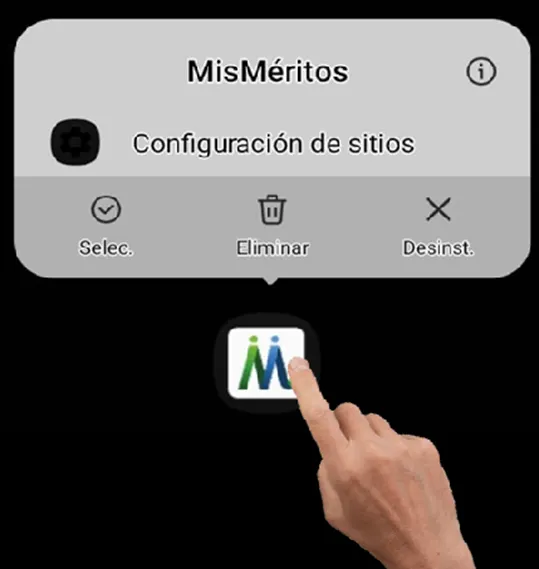 - Mantén presionado el icono de la aplicación de “MisMéritos” por unos segundos.
